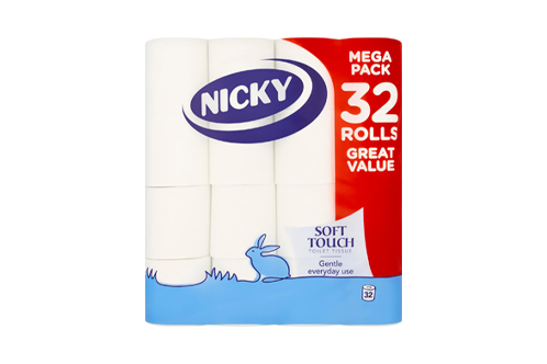 T T NICKY SOFT TOUCH TISSUE ROLLS (32 ROLLS)